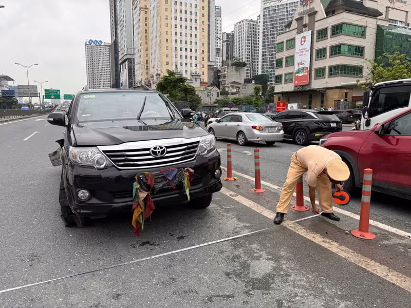 Theo đó, vào khoảng 15h10 cùng ngày, Phòng Cảnh sát giao thông nhận được tin báo của người dân về việc một xe ô tô đi từ đường Võ Văn Kiệt qua cầu Thăng Long lên đường Vành đai 3 trên cao, bị xịt hai lốp bên phụ và người điều khiển có biểu hiện bất thường.