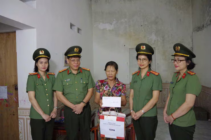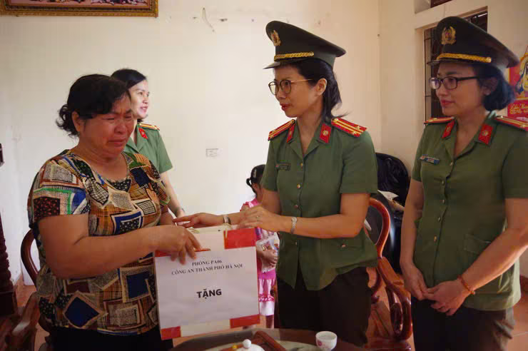 Tại đây, Thượng tá Lê Tuấn Anh - Phó Trưởng Phòng Kỹ thuật nghiệp vụ - CATP Hà Nội và các nữ cán bộ chiến sỹ Phòng Kỹ thuật nghiệp vụ trực tiếp tới thăm hỏi, động viên gia đình chị Nguyễn Thị Bình ở thôn Giang Soi xã Vân Đình, chồng mất sớm do căn bệnh ung thư, một mình nuôi mẹ già cùng 3 con nhỏ, trong đó có 1 cháu bị bệnh tự kỷ; Gia đình bà Ngô Thị Quang ở thôn Nội xá, xã Hoà xá. Bà Quang một mình nuôi hai cháu nhỏ, con trai bà ốm nằm liệt giường, con dâu bỏ đi, bản thân bà bị bệnh hiểm nghèo và khiếm thị.