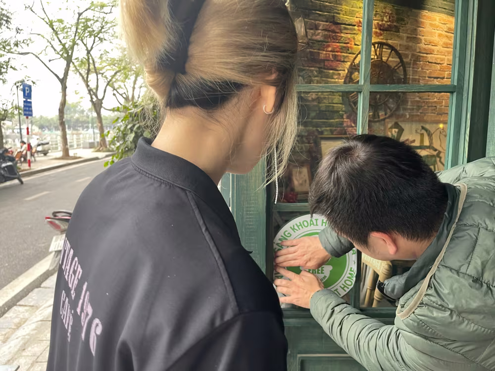 Sau khi lắng nghe ý kiến phản hồi của các hộ kinh doanh, phường Trúc Bạch cam kết xây dựng môi trường văn hoá du lịch lành mạnh; khi dán các logo màu xanh này...